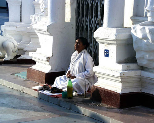 Beobachtet habe ich diese Frau bei der Shewadagon-Pagode (Yangon).