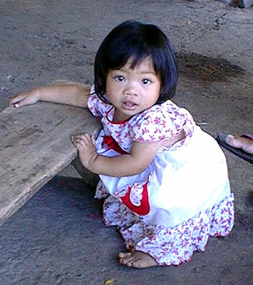 Dieses Bild von dem kleinen Mädchen aus dem Reisdorf Banga An habe ich wenige Sekunden zu früh gemacht: Ein kleines Rinnsal wäre sonst deutlich zu sehen gewesen. Wenn einen solche Augen anschauen, wie