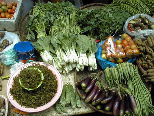 Ein Bild eines asiatischen Marktes ist immer unvoll- kommen. Das bunte Treiben, der Lärm und die Geschäftig- keit können vielleicht noch in einem Video eingefangen werden. Aber die Gerüche - das muß man